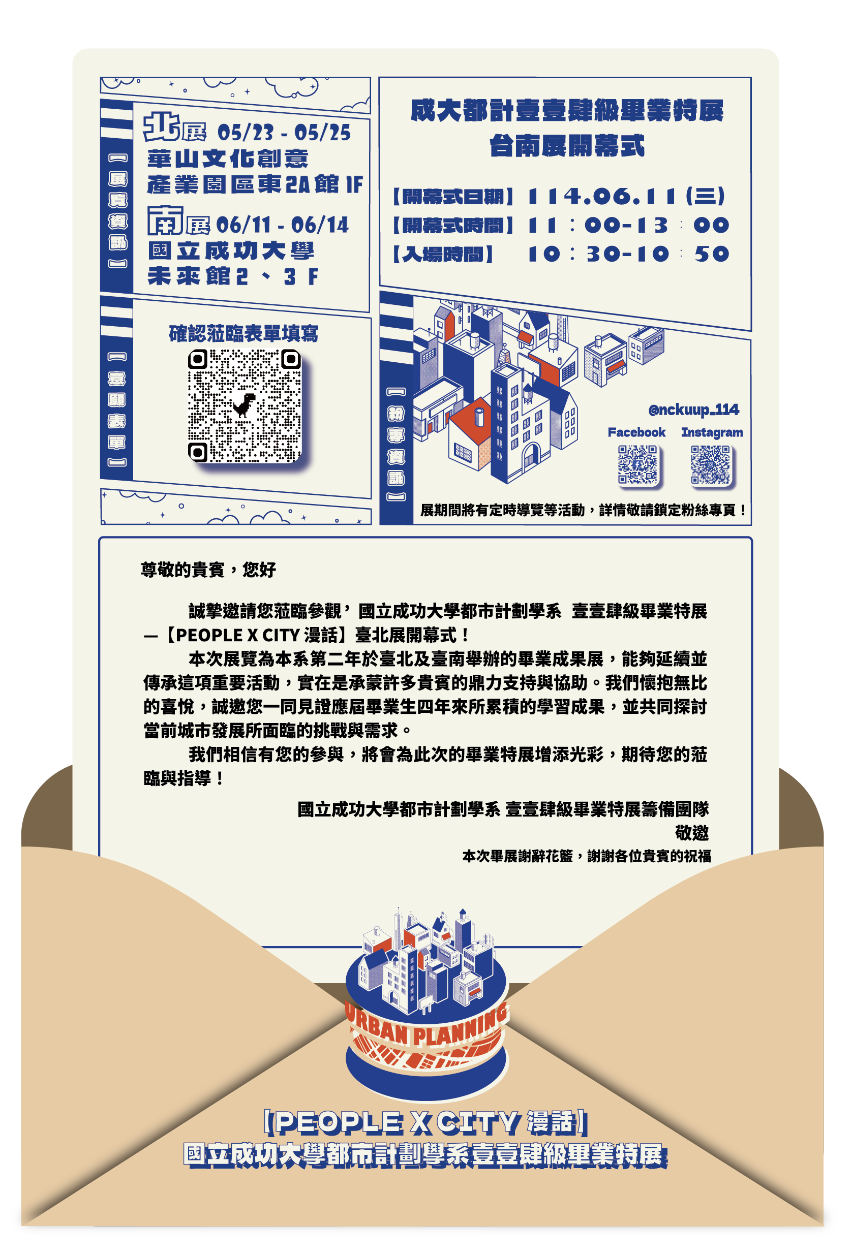 【活動轉發】成大都計壹壹肆級畢業特展台北展/台南展開幕式