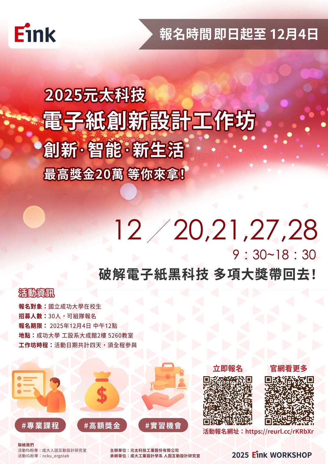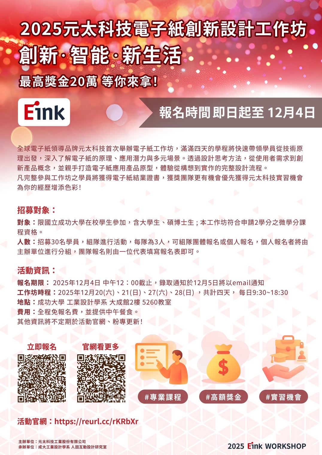 【活動轉發】2025元太科技 電子紙創新設計工作坊 最高獎金20萬 等你來拿!